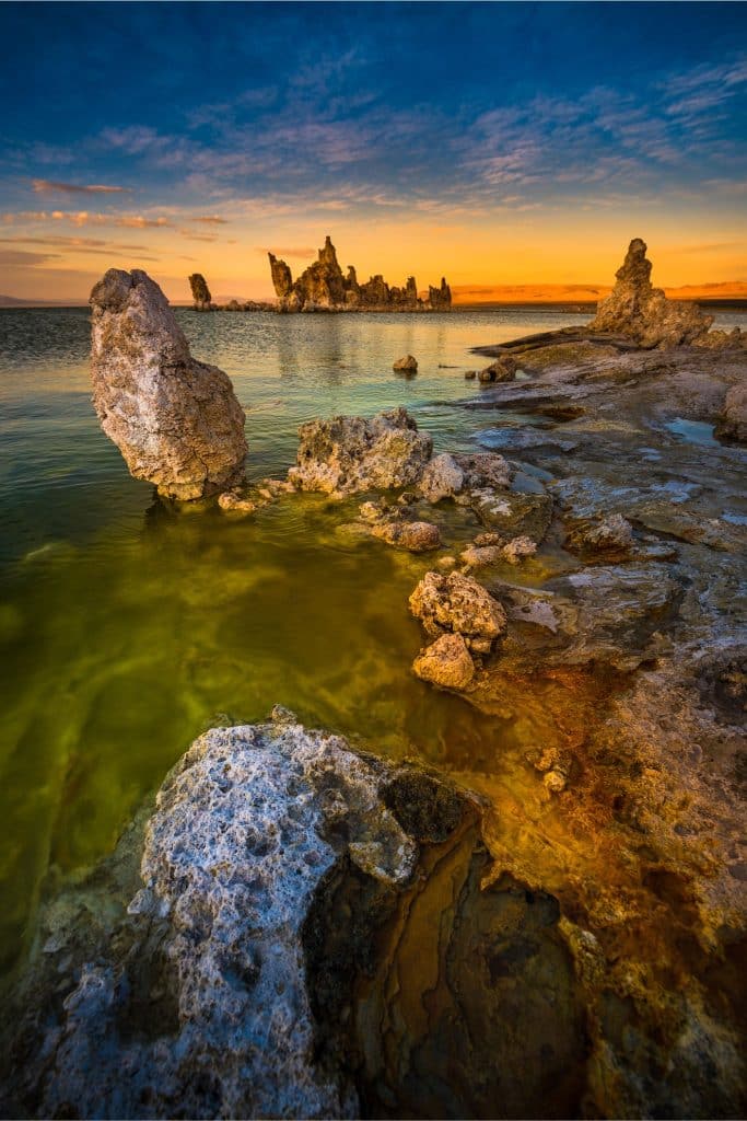 This is another enchanting desert lake that has been kept secret for a while. Similar to the Salton Sea, it’s saline and full of life, such as migratory birds, brine shrimp, and alkali flies. And the limestone formations called tufa towers add to its charm.