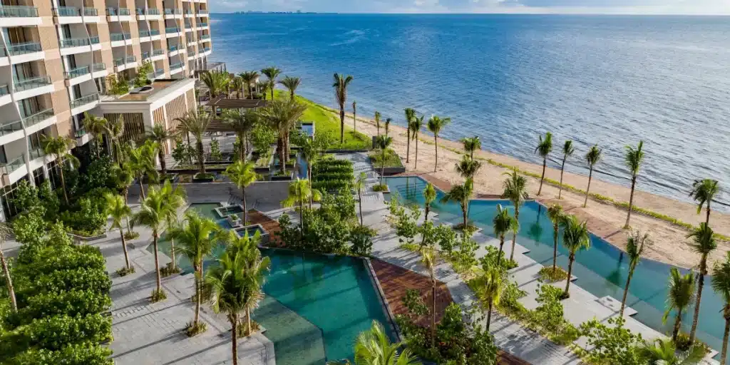 Situated within a 29-acre exclusive beachfront estate situated on the end of Punta Nizuc in Cancun, the resort is surrounded by 29 acres of protected mangroves and lush local foliage. Facing the white sands of the Mesoamerican Barrier Reef, the luxury beachfront resort offers 274 guestrooms and suites and is inspired by Mayan culture from its architecture to its dining experiences and 30,000 sq. ft. first ESPA branded spa in the Mexican Caribbean.