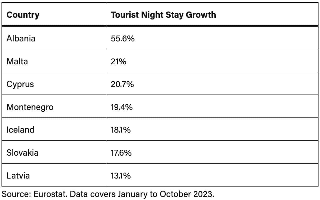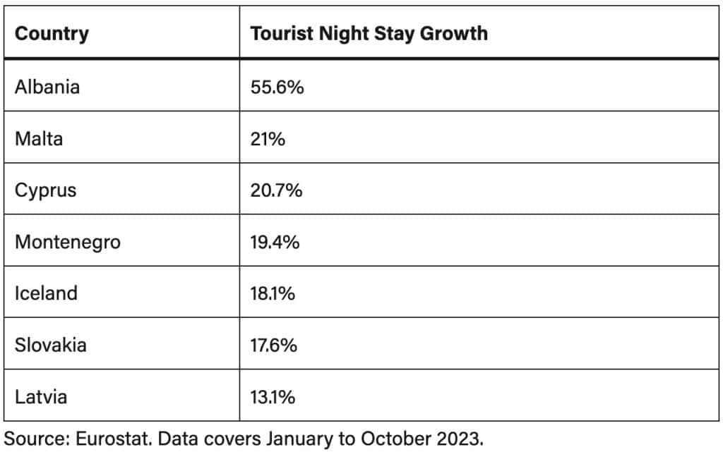 According to Eurostat, Europe had 2.6 billion tourist stays in 2023 and compared to previous 2022 Albania had record breaking 55.6% growth.