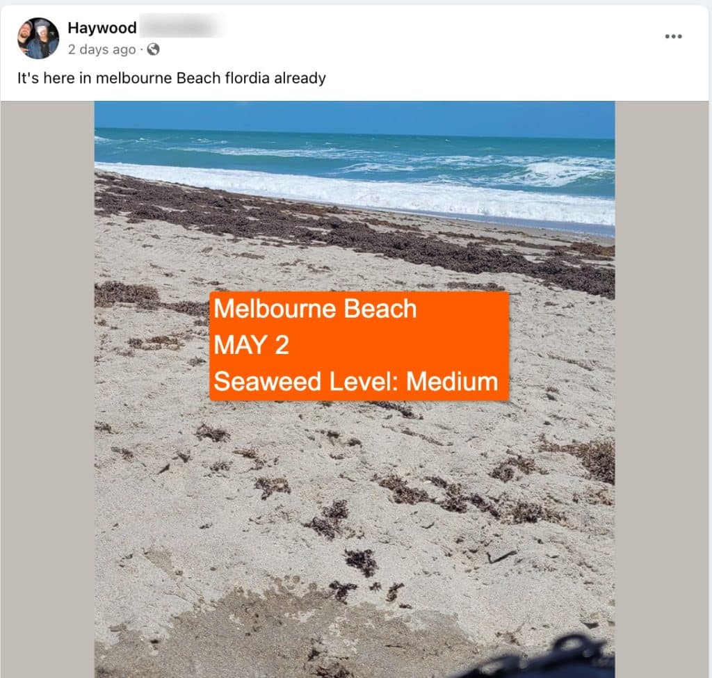- April 25 – May 4: Latest photo reports from Sargassum Seaweed Florida Reporting FB Group