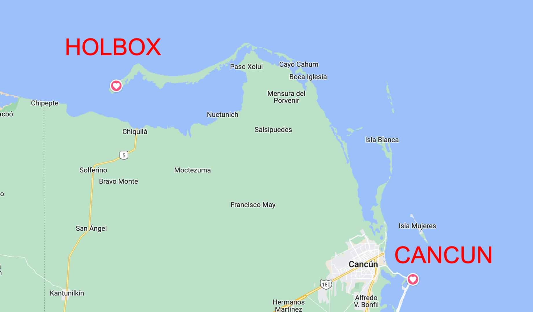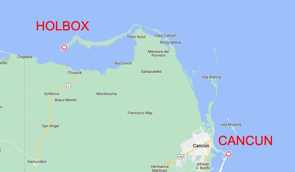 Holbox Island is located 37.8 miles (60.9 kilometers) from Cancun and can be easily reached by car or shuttle bus but you will have to take a ferry after. There are no cars on the island, so you if you’re coming with a rental car, you’ll need to leave it at the port. The ferry ride takes around 25 minutes.