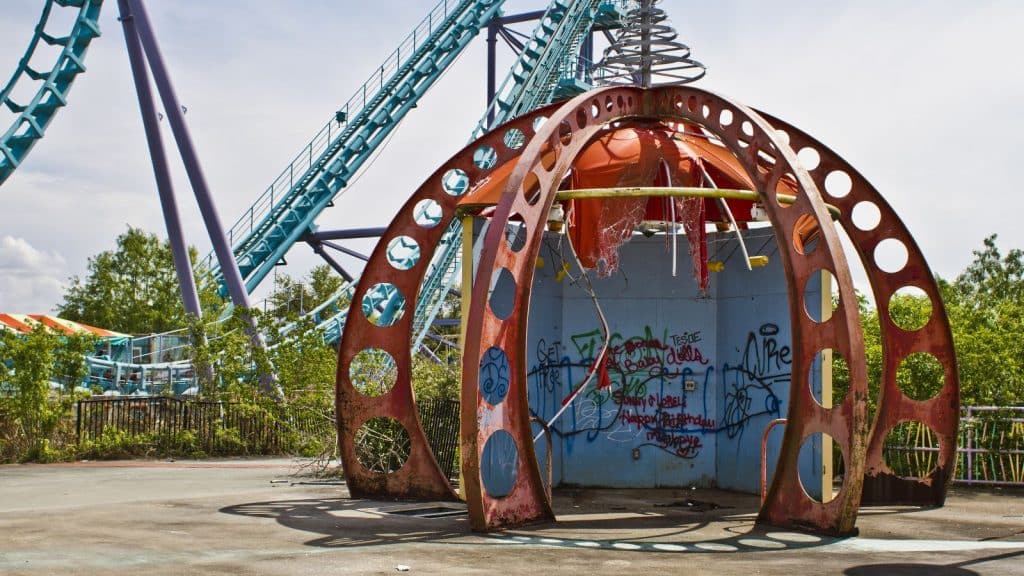But don’t hang your head. It can still be enjoyed today for an exciting urbex exploration. You will come across muddy clowns, fallen mermaids, and broken Mardi Gras figures. The park is also often visited by alligators which creates a fascinating contrast.