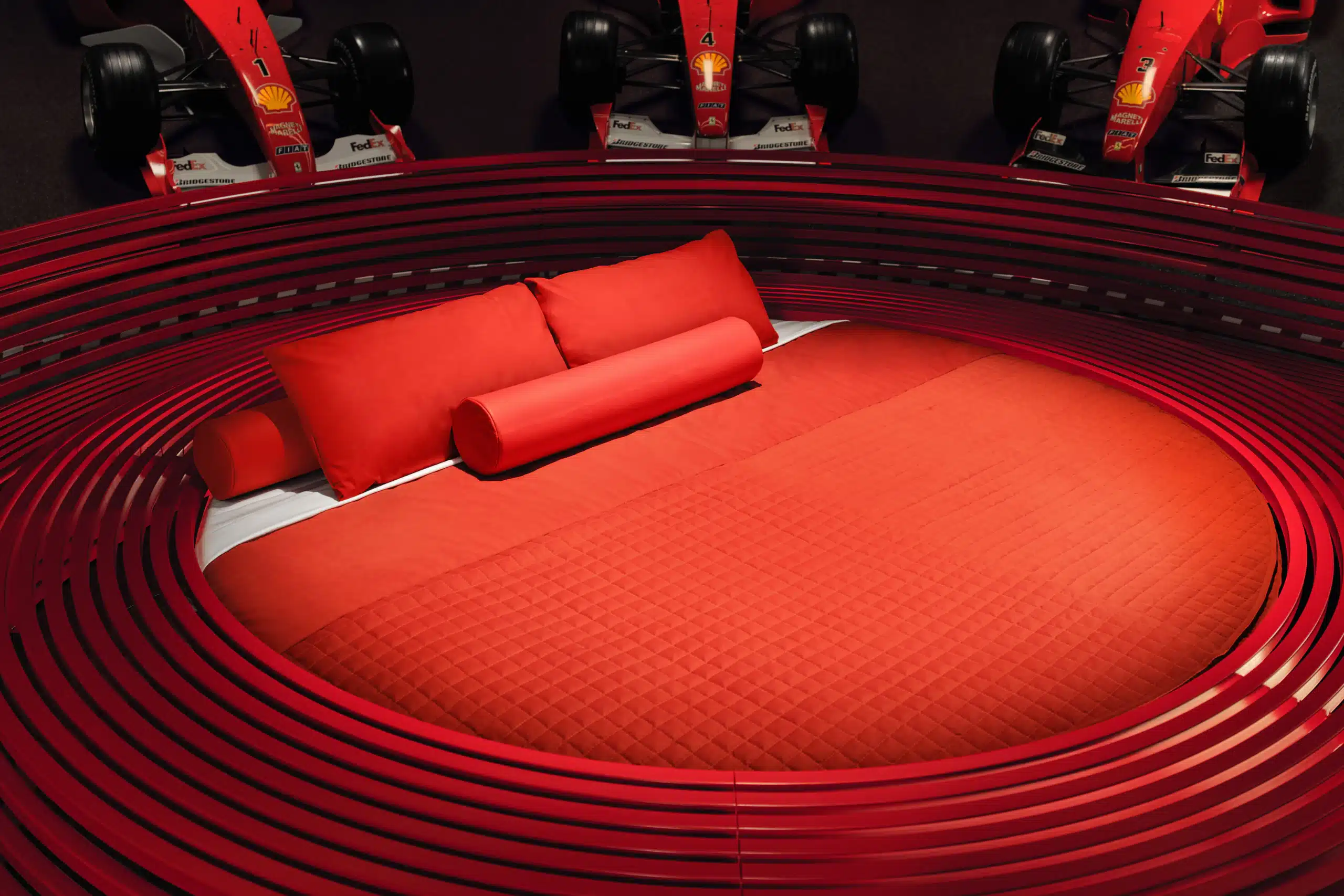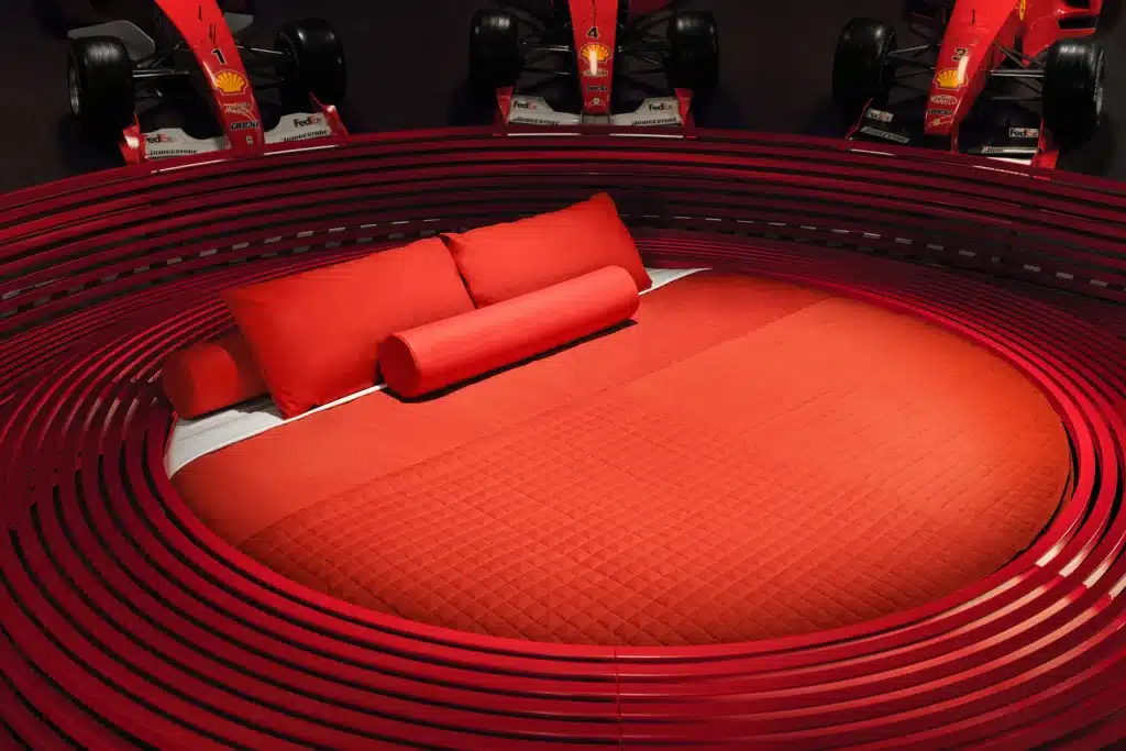 Racing car fans can spend a night at the Ferrari Museum in Maranello, Italy, in a bed crafted from the same leather as Ferrari car seats. Your car bed will be surrounded by eight Formula 1 cars.