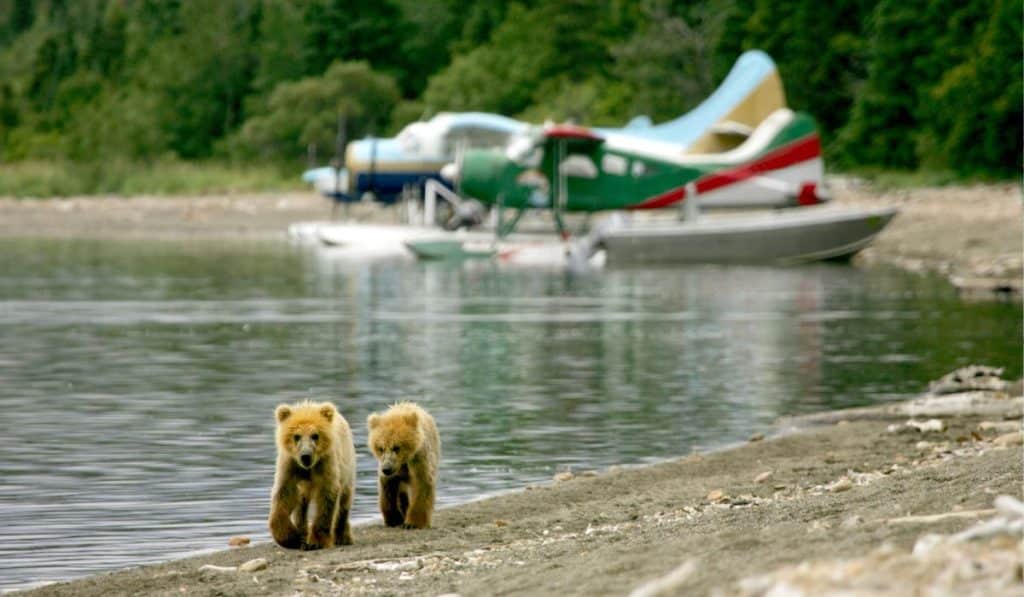 The best place to spot them both is at Brooks Falls. Many famous photos of bears catching fish were taken there and you can snap one as well.