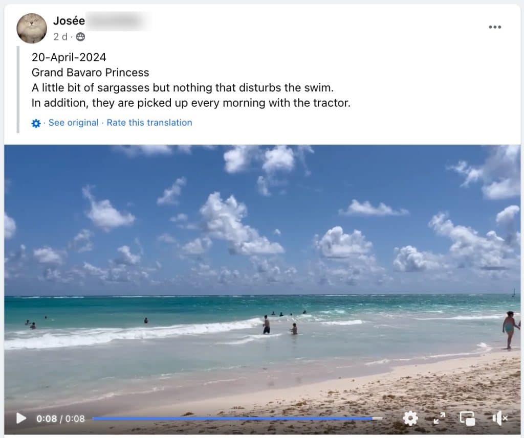 – Bavaro Beach, outside of Bavaro Princess Resort, one of the 10 most amazing beaches in the world as per National Geographic, reported no sargassum.