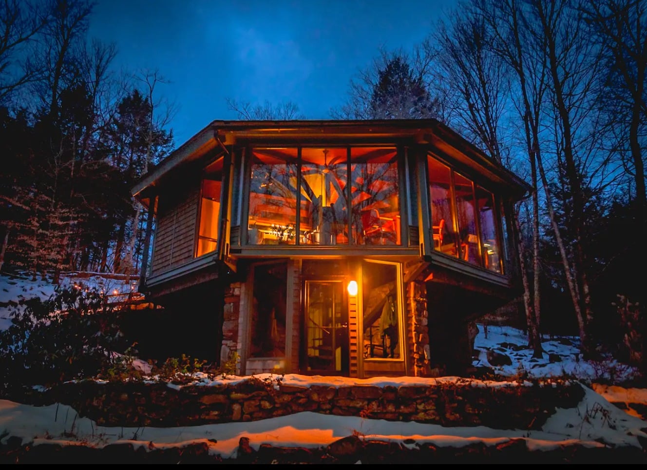 Do you like to vacation in unique hotel rooms and Airbnbs? We have something for you on this list, too. In the midst of the breathtaking Berkshires, we’ve found an octagon-shaped chalet with floor-to-ceiling glass walls, perfect for a romantic getaway or a weekend in nature.