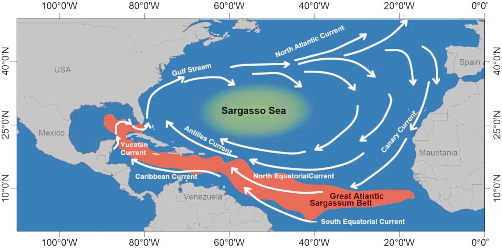 Beachgoers along the Gulf of Mexico and the Atlantic Ocean in the Caribbean and Florida are being met by a massive sargassum blob. The Great Sargassum Belt, a 5,000-mile-long area, has doubled in size in both December and January.