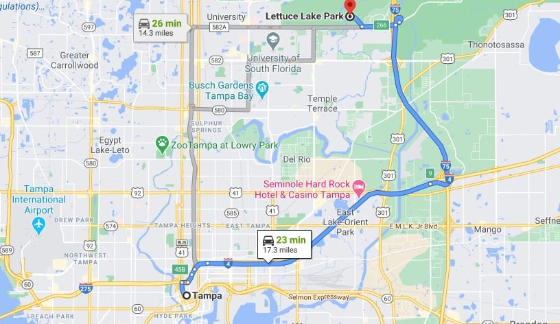 Situated about a half-hour outside of Tampa, Lettuce Lake Park consists of hardwood forests, cypress domes, and a freshwater wetland that lies in the natural floodplain of the Hillsborough River.