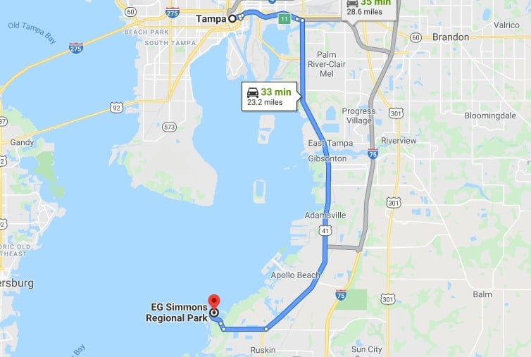 Located in Hillsborough County and just eighteen miles from Tampa, it provides peace, serene respite from city life. E.G. Simmons Park has two campgrounds with 103 sites.