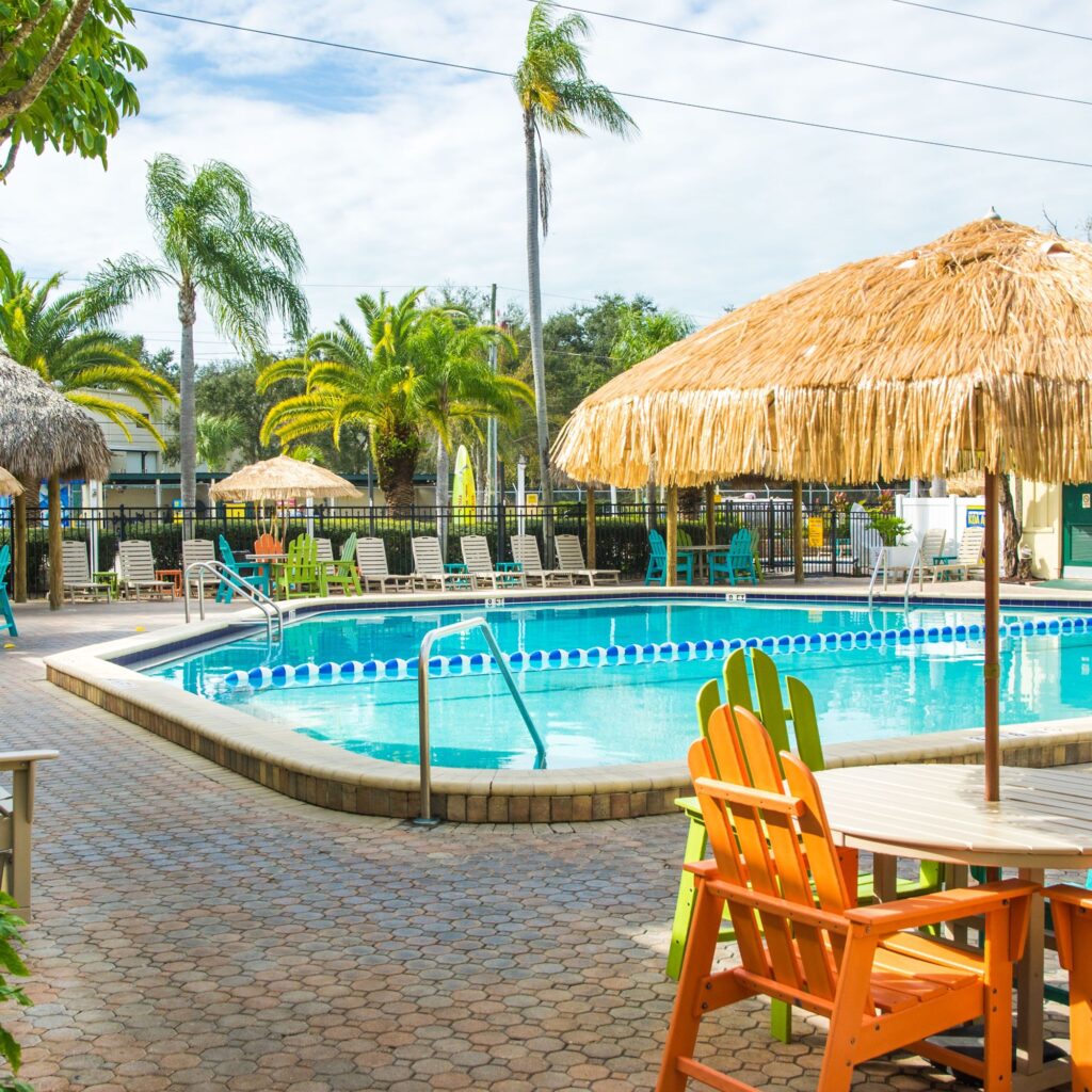 From outdoor movies, themed weekends, and on-site fishing to an outdoor swimming pool, two hot tubs, mini-golf, or volleyball, you will quickly forget the hustle and bustle of everyday life. Outdoor enthusiasts will enjoy paddling and kayaking in the bayous or biking the local 38-mile Pinellas County Fitness Trail.