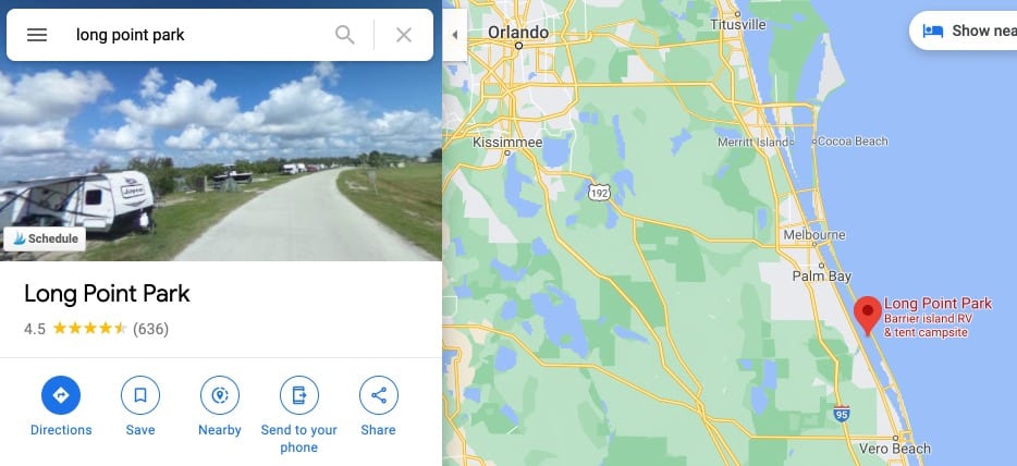Long Point Campground is 84.5-acre preservation and river park area located on an island in the Indian River Lagoon.