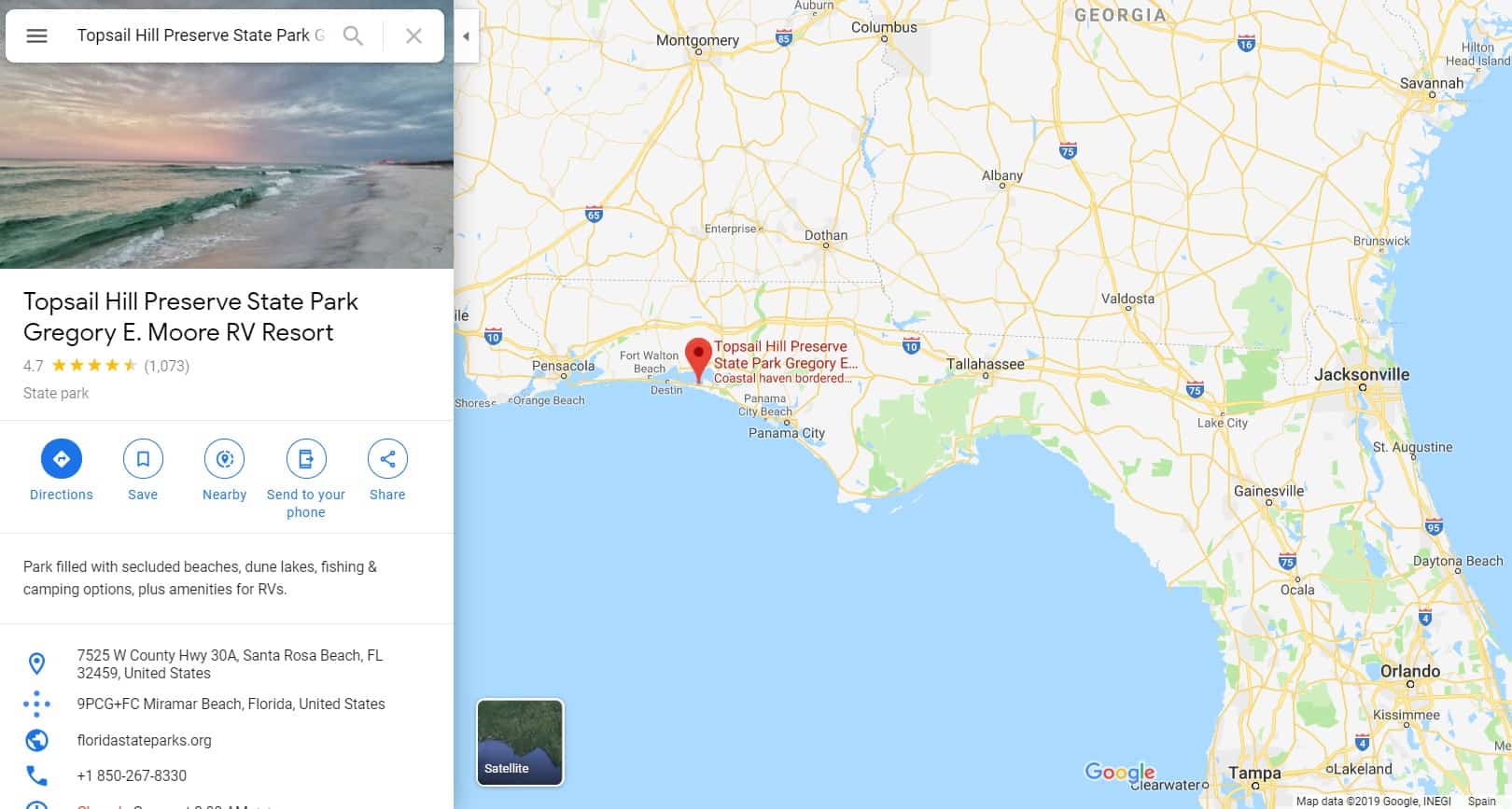 The Gregory E. Moore RV resort of the park is home to 156 RV campsites. The white quarry sand beaches with emerald water of the Gulf of Mexico will give you an excitement of tram running towards the beach.