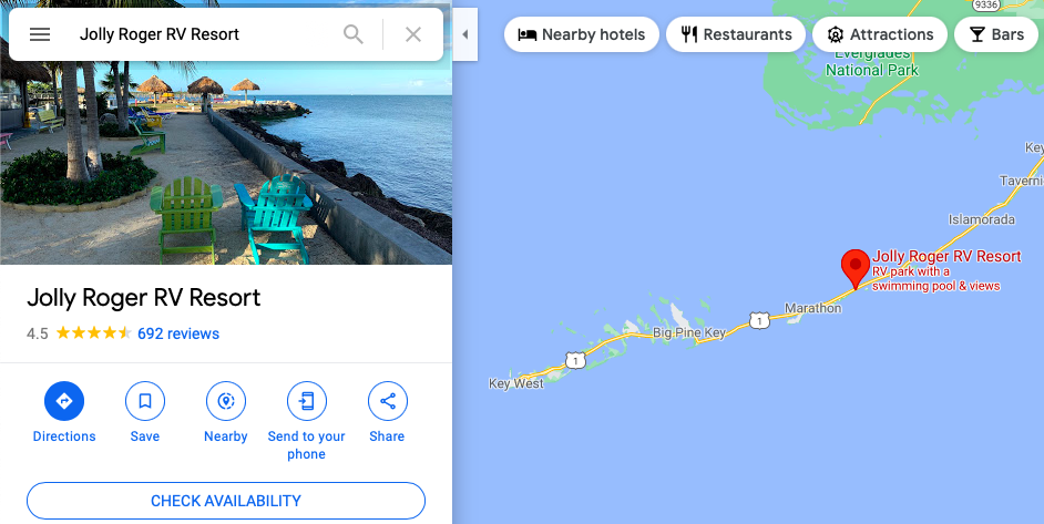 Jolly Roger RV Resort won’t either disappoint you with its more than 160 shaded, spacious, and grassy full hook-up sites, which seem to be a rare find in the Florida Keys.